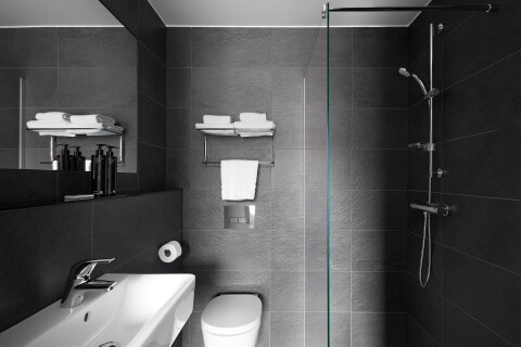 The offer includes a modern, fully furnished private room around 18 m² with a private bathroom and your choice of private or shared kitchen. You also get lightning speed WiFi, a flatscreen TV, your own bike, bed linen, regular room cleaning and 24/7 reception and security.