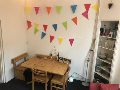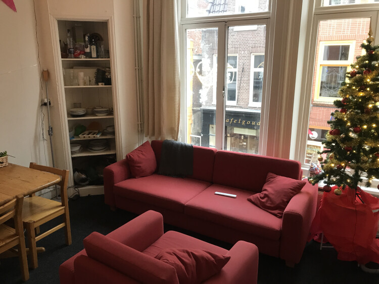 De locatie van ons huis is ideaal, midden in het centrum in de Folkingestraat. De ap is 1 minuut lopen (altijd handig), het station 5 minuten en het is 15 minuten fietsen naar Zernike. Je deelt een grote gk en keuken, badkamer en wc. De huur prijs is €507 excl. g/w/e en internet.