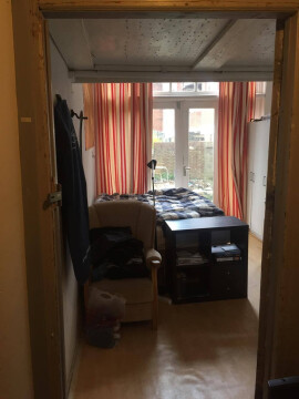 Kamer van 15m2 met de mogelijkheid van een hoogslaper 5m2 (totaal ongeveer 20m2). Kamer ligt in het centrum van Groningen op de Poelestraat en heeft een eigen deur naar de tuin. Doordat de Kamer aan de achterkant van het huis zit, is het erg rustig. In het huis is een uitgebreide keuken met twee ovens, twee badkamers (waarvan eentje naast de kamer zit), een grote tuin (waar een pingpong tafel staat), en een wasmachine met een droger. Daarnaast is het huis goed gelegen en zijn alle voorzieningen dichtbij. De kamer zelf zal wel gestoffeerd blijven maar de spullen die erin staan zullen worden weggehaald, maar indien een kast nodig blijkt te zijn, kan er wellicht iets geregeld worden. In het huis wonen ook 11 andere jongens. Ze zijn allemaal studenten en de meeste ervan studeren aan de RUG. Als je enige vragen hebt, bel dan gerust