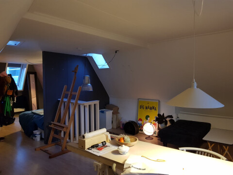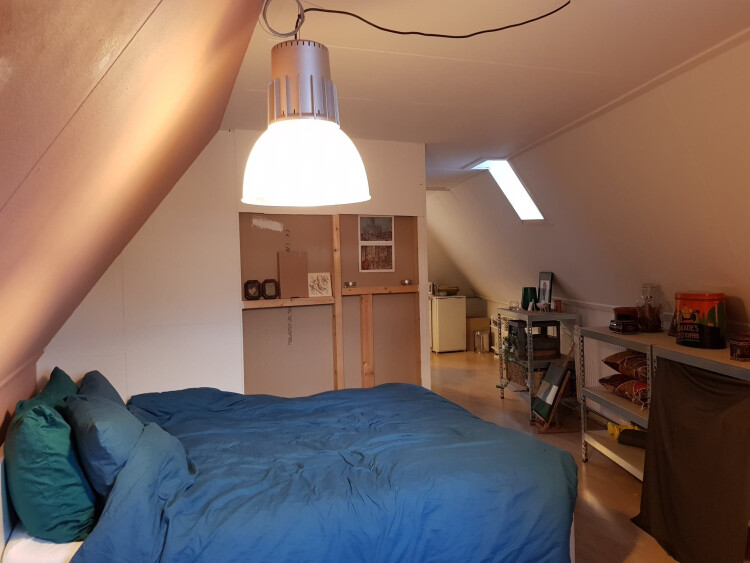 Het gaat om een zolderkamer, deze kamer wordt gescheiden door een wand.