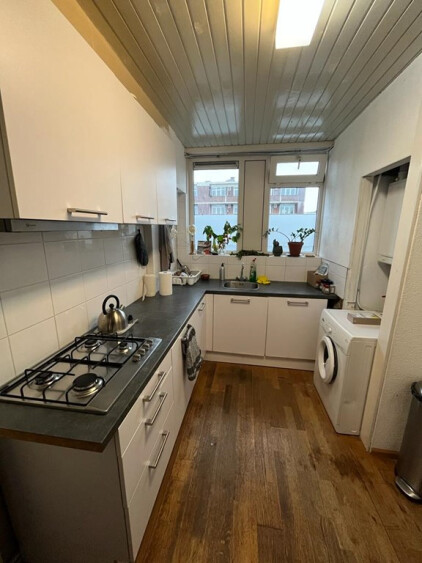 Bij binnenkomst kom je direct in de hal. De gemeenschappelijke keuken is van alle gemakken voorzien. Daarnaast deel je met twee andere huisgenoten de badkamer. De slaapkamer is circa 20 m2.
