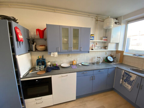 De woning bevindt zich op de eerste verdieping van het pand. Je komt binnen in de gedeelde hal, die toegang geeft tot de gemeenschappelijke keuken, welke is voorzien van een afzuigkap, gaskookplaat, oven en vaatwasser, evenals tot de woonkamer van circa 22 m² en het toilet. Op de tweede verdieping liggen de slaapkamers. kamer 3 circa 6 m² . Tot slot is er een badkamer van ongeveer 3 m², uitgerust met een douche en een wastafel.
