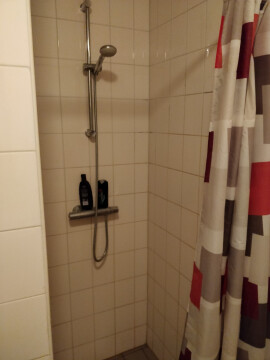 Grote woonkamer-keuken 12 m2 en slaapkamer 9.5 m2, badkamer en toilet delen met één huisgenoot (m), berging op begaande grond.