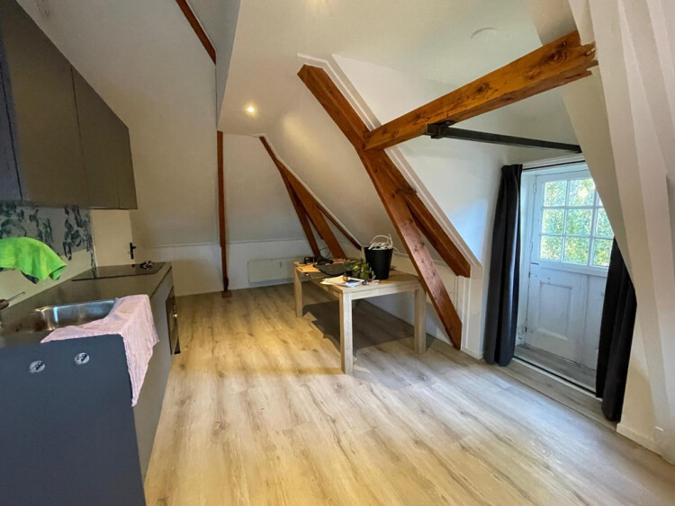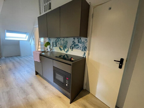 Bij binnenkomst betreed je de woonkamer met een open keuken, volledig uitgerust met een inductiekookplaat, koelkast en afzuigkap en combinatie-oven/magnetron. De badkamer is voorzien van een toilet, douche en wastafel.