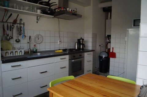 De gemeenschappelijke badkamer, toiletten, wasmachine, ruime keuken en een afgesloten fietsenberging deel je met twee bewoners.