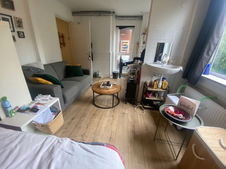 Indeling: De slaapkamer is circa 18 m2. De badkamer en het toilet is gedeeld met de andere huisgenoten.