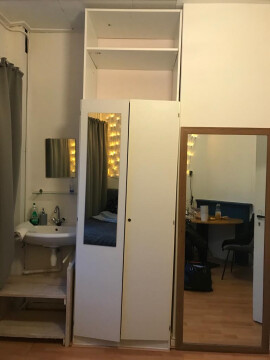 Aan de rand van centrum Groningen , Het is een rustige buurt . In een studentenhuis is deze kamer beschikbaar . Er hangt een gezellige gemoedelijke sfeer.