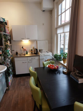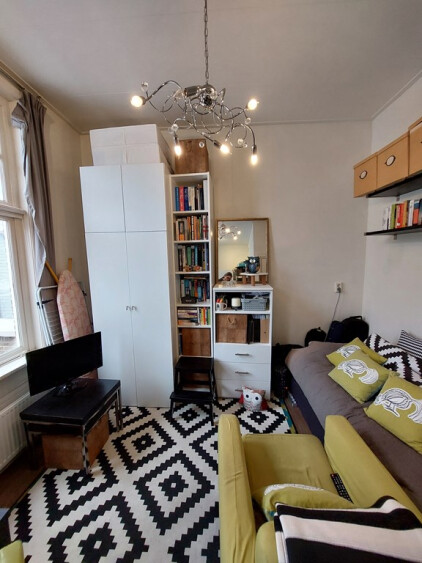 De beschikbare kamer is ongeveer 15 m² en bevindt zich op de eerste verdieping aan de achterzijde van het pand. De kamer heeft een eigen keukenblok met gasfornuis en een wastafel. De badkamer en het toilet worden gedeeld met andere huisgenoten.