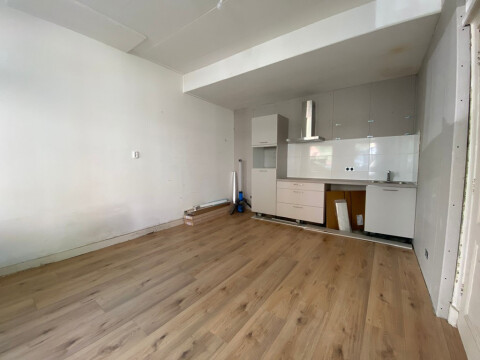 Bij binnenkomst kom je in de hal, waar de trap toegang biedt tot de eerste verdieping. Via de hal bereik de gemeenschappelijke badkamer, die wordt gedeeld met twee medebewoners. De slaapkamer met eigen keuken bevindt zich op de begane grond en heeft een gebruiksoppervlakte van ongeveer 21 m2.
