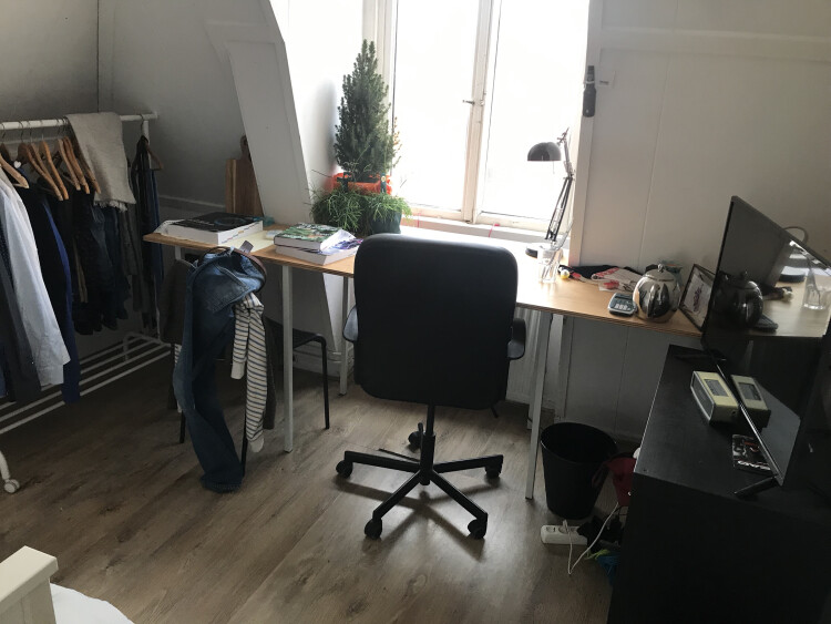 De kamer is 11m2 en kost €260,- (!!!) per maand inclusief gas, water, elektra, internet. De douche, wc, keuken (met vaatwasser en wasmachine!) deel je met z'n 4en. Er zijn daarnaast voldoende koelkasten in huis te vinden. Kamer wordt gestoffeerd achtergelaten met bureau.