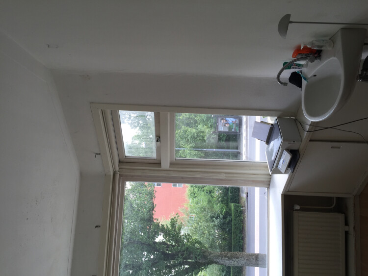 Grote kamer met eigen wasbak te huur aan het Hoendiep in Groningen in de Rivierenbuurt. Gemeenschappelijk balkon.
