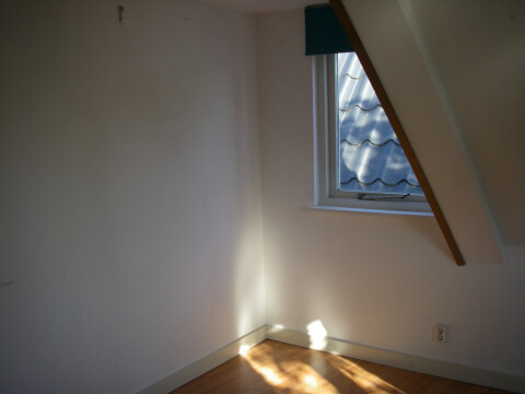 De kamer is ongeveer 15m2 en kost 310 (incl.). Het is een lichte kamer met ramen aan drie zijden.