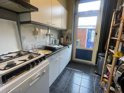 Het bestaat uit twee eigen kamers van 6,4m2 en 5,4m2. Tevens beschikt de woning over een gedeelde woonkamer van 13m2 en een keuken van 6,5m2, deze worden samen met de badkamer en toilet gedeeld met in totaal 5 huisgenoten. De woning beschikt over een gedeelde tuin aan de voorzijde van 22,8m2 en aan de achterzijde een gedeelde tuin van 40m2 met een berging van circa 8m2.