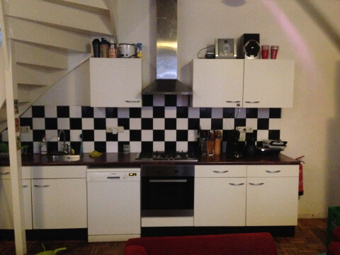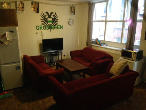 Verder beschikt ons huis over een keuken, 2 douches en 2 wc's. In totaal wonen we met 9 jongens en ons huis ligt op Westerhaven tegenover de Mac en op loopafstand van de AH en de Grote markt!