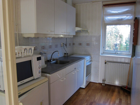 Grote L- Vormige kamer met tuin en ruime keuken - fornuis/koelkast in rustige groene buurt. (32 m2) voor rustige studente.