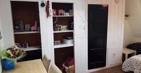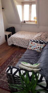 Ik ga voor een paar maanden naar het buitenland en zoek een vrouwelijke onderhuurder. Het gaat om een gezellige ruime kamer van 18 m2, met bureau, palletbed en bank. Verder voorzien van een aantal kasten in de muur voor extra bergruimte.