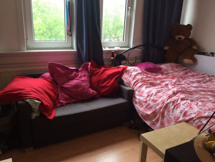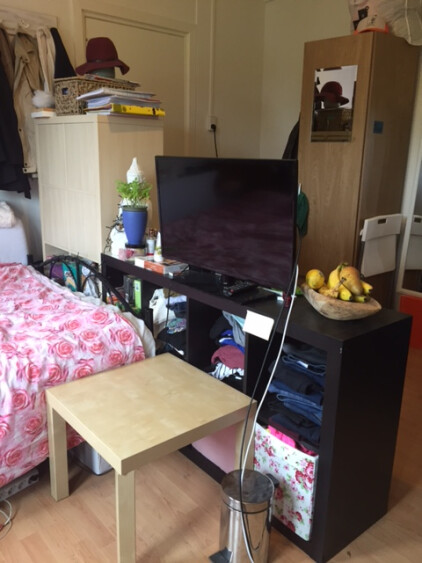 Omdat ik ga werken in het buitenland verhuur ik graag mijn kamer onder voor een klein prijsje. De kamer zit in een netjes huis in de Korreweg-buurt, dicht bij het centrum. Je deelt de badkamer (met bad), wc en keuken met 4 andere mensen, 2 mannen en 2 vrouwen. In de kamer staat een 2-persoons bed, meerdere kasten, een koelkast, eettafel en bank met grote tv.