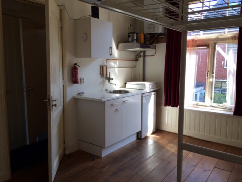 Je hebt de beschikking over een eigen keuken met kookplaat, koelkast, combimagnetron, afzuigkap enz.